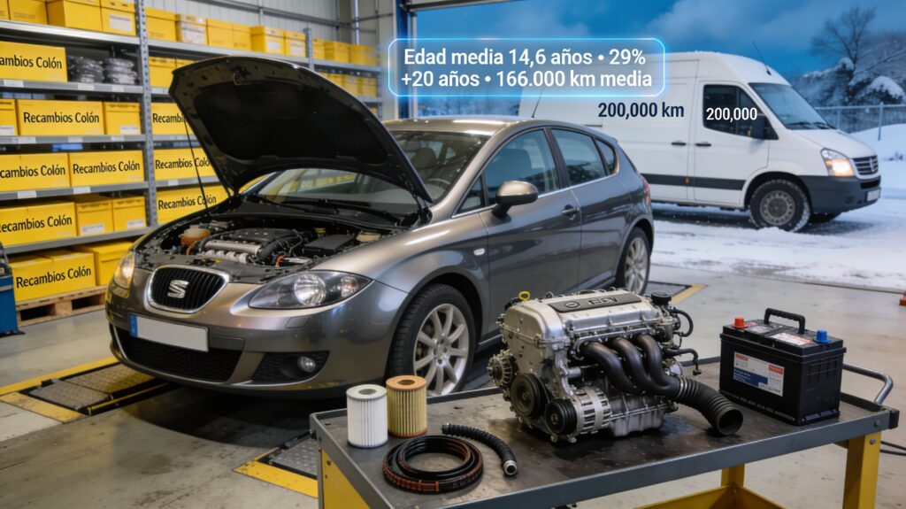Esto significa más entradas al taller: el 45–48% de las visitas son coches de +15 años, con operaciones de mantenimiento y reparación disparadas.